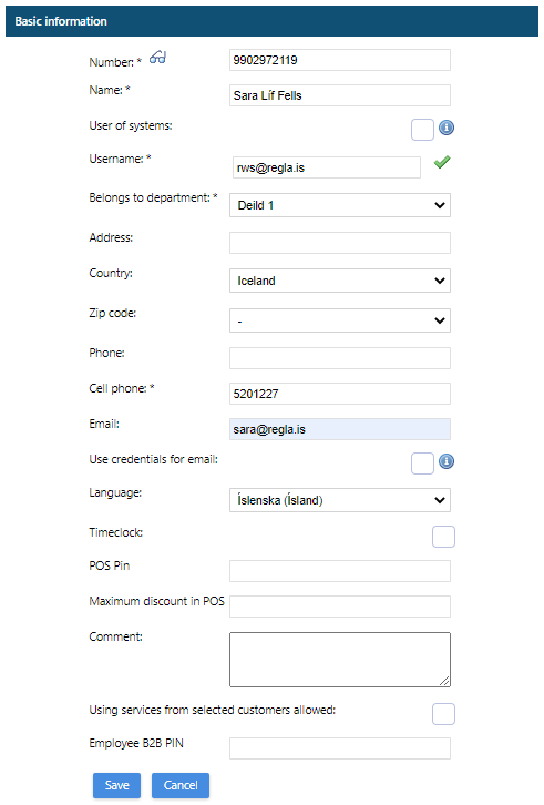 Admin / File administration / Employees, Create new.