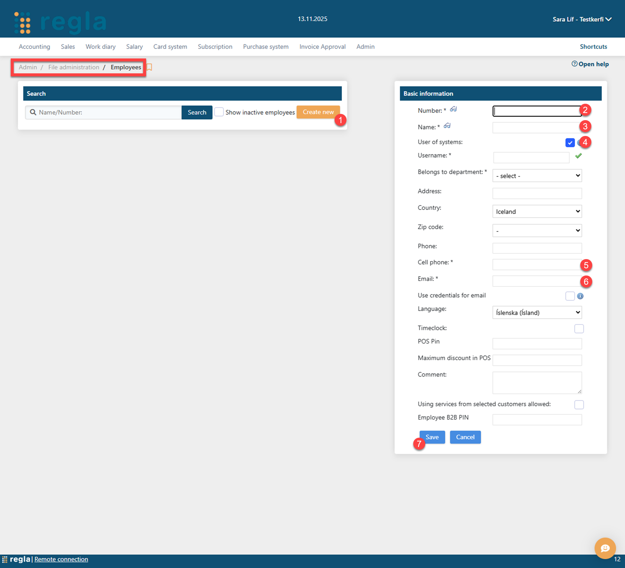 - Number: put in a fake kennitala (99xxxx-xxxx)