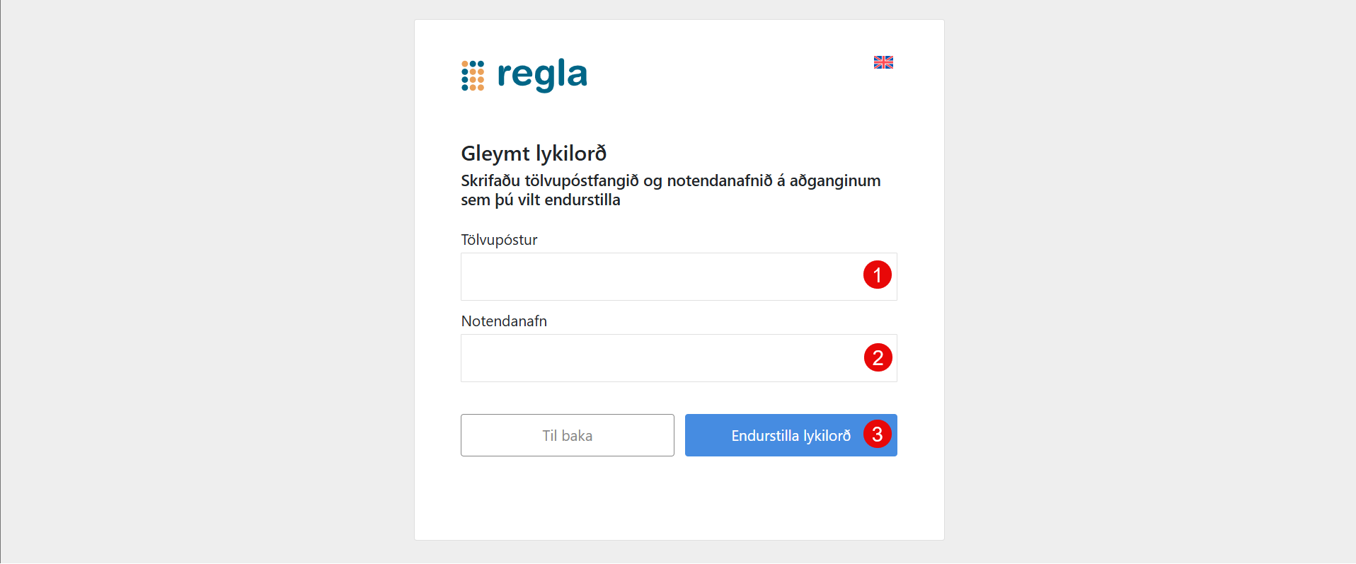 - Þitt Notendanafn sem þú notar til að skrá þig inn í Reglu