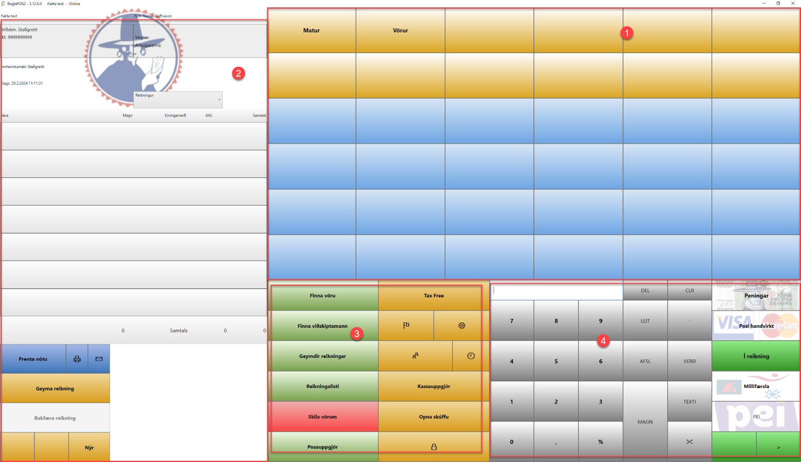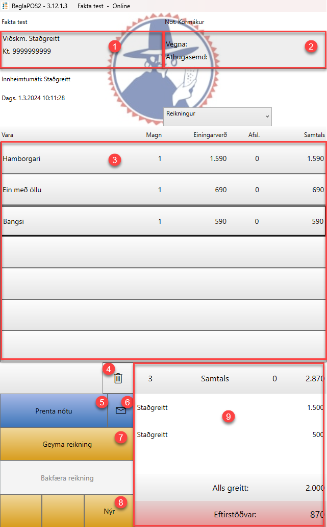 - Prentar út Tax free nótu fyrir viðskiptavini. Athugið að virkja þarf það fyrst á Reglu bakenda.