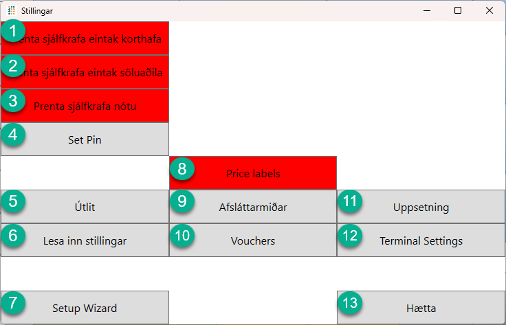 - Gott að nota við fyrstu uppsetningu til að setja upp kerfisstillingar sem dæmi sjálfvirka prentun eða staðfesti á að eyða vöru úr vörulínu.