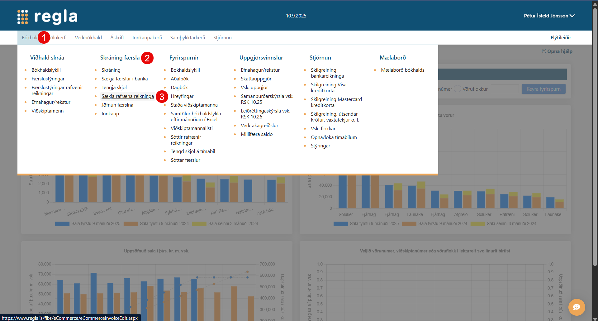 - Sending rafrænna reikninga (2a), handfærðar bókhaldsfærslur (2b) og innkaupareikninga (2c) í samþykkt