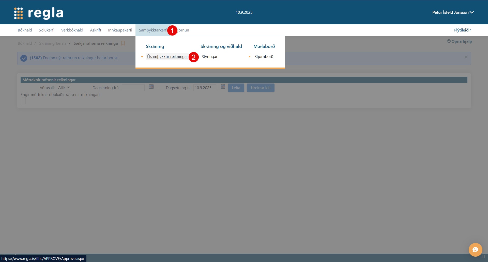 2a. Rafrænir reikningar lesnir inn og sendir í samþykkt