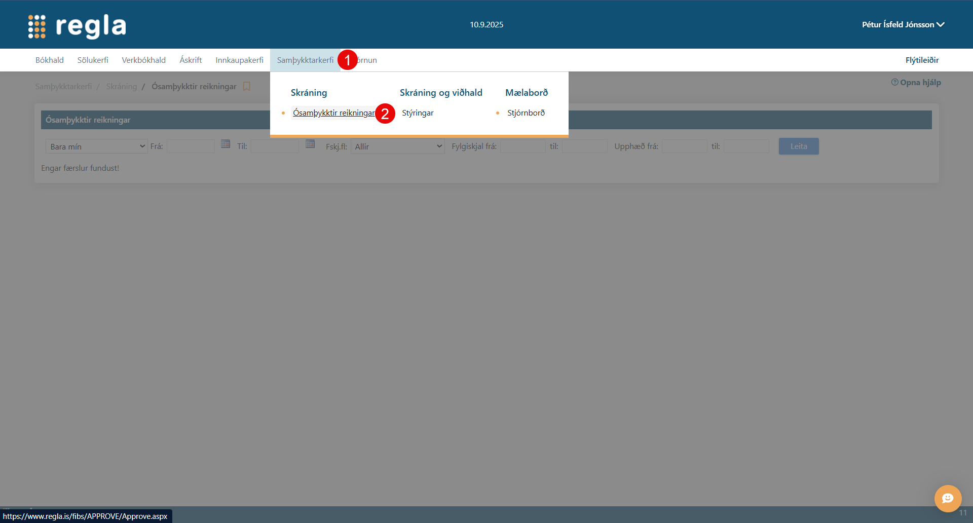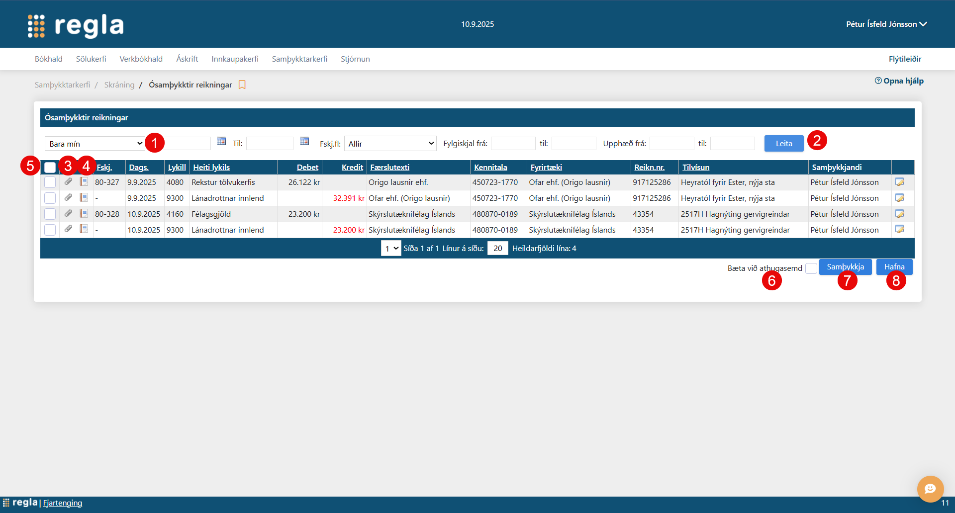 - Sýnir ósamþykkta reikninga eftir samþykkjendum