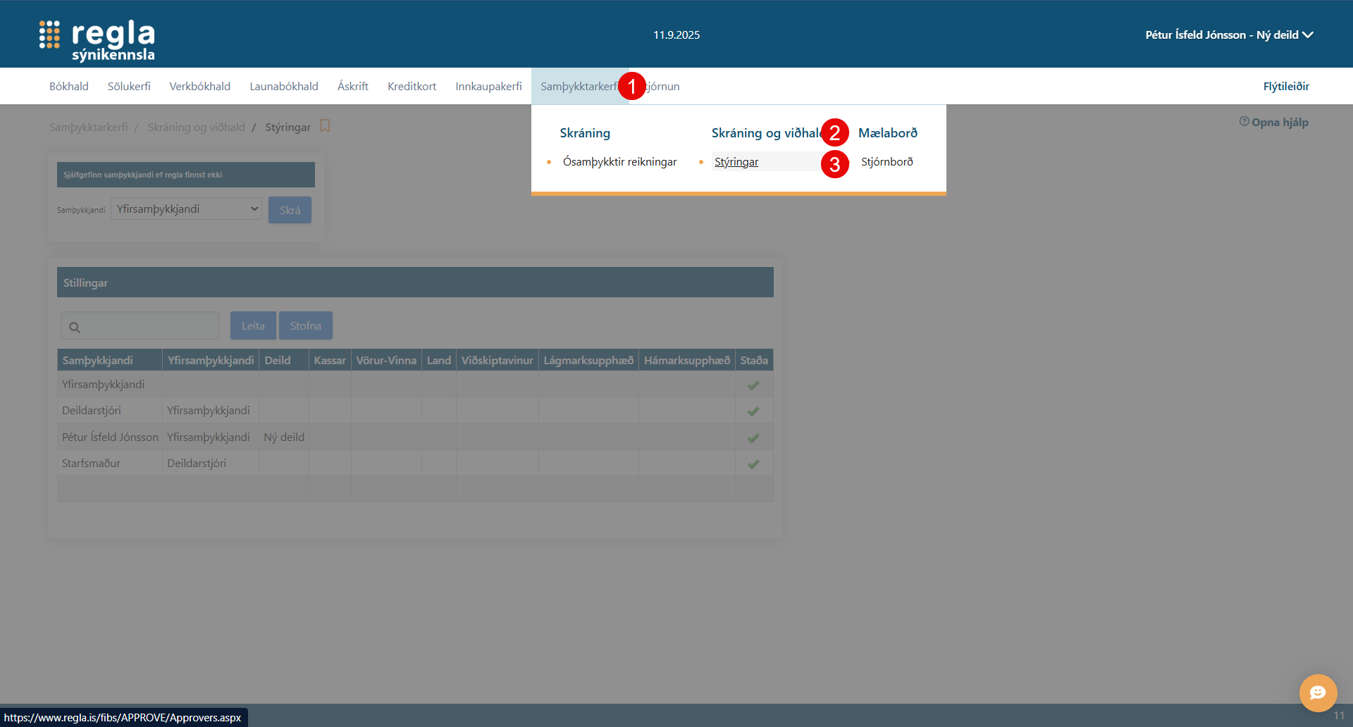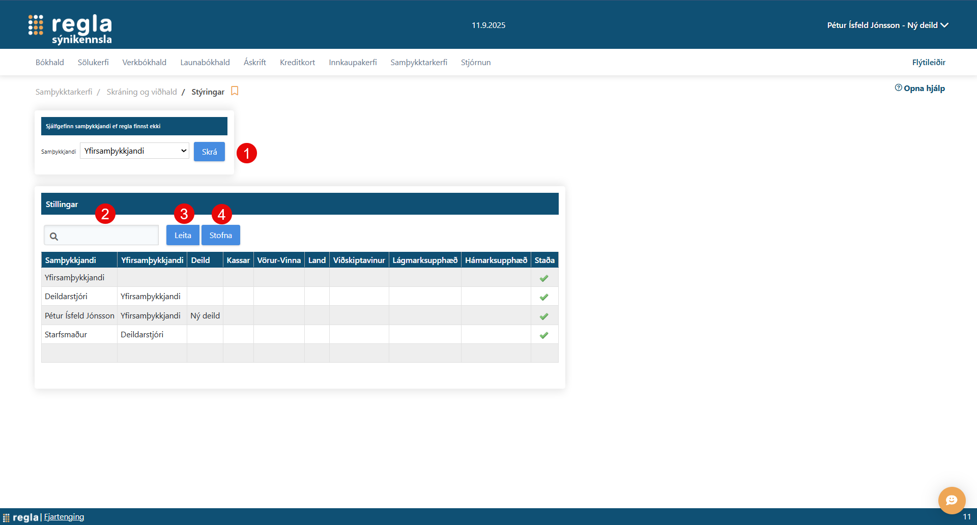 - Sjálgefinn samþykkjandi valinn (yfirleitt bókari eða framkvæmdastjóri)