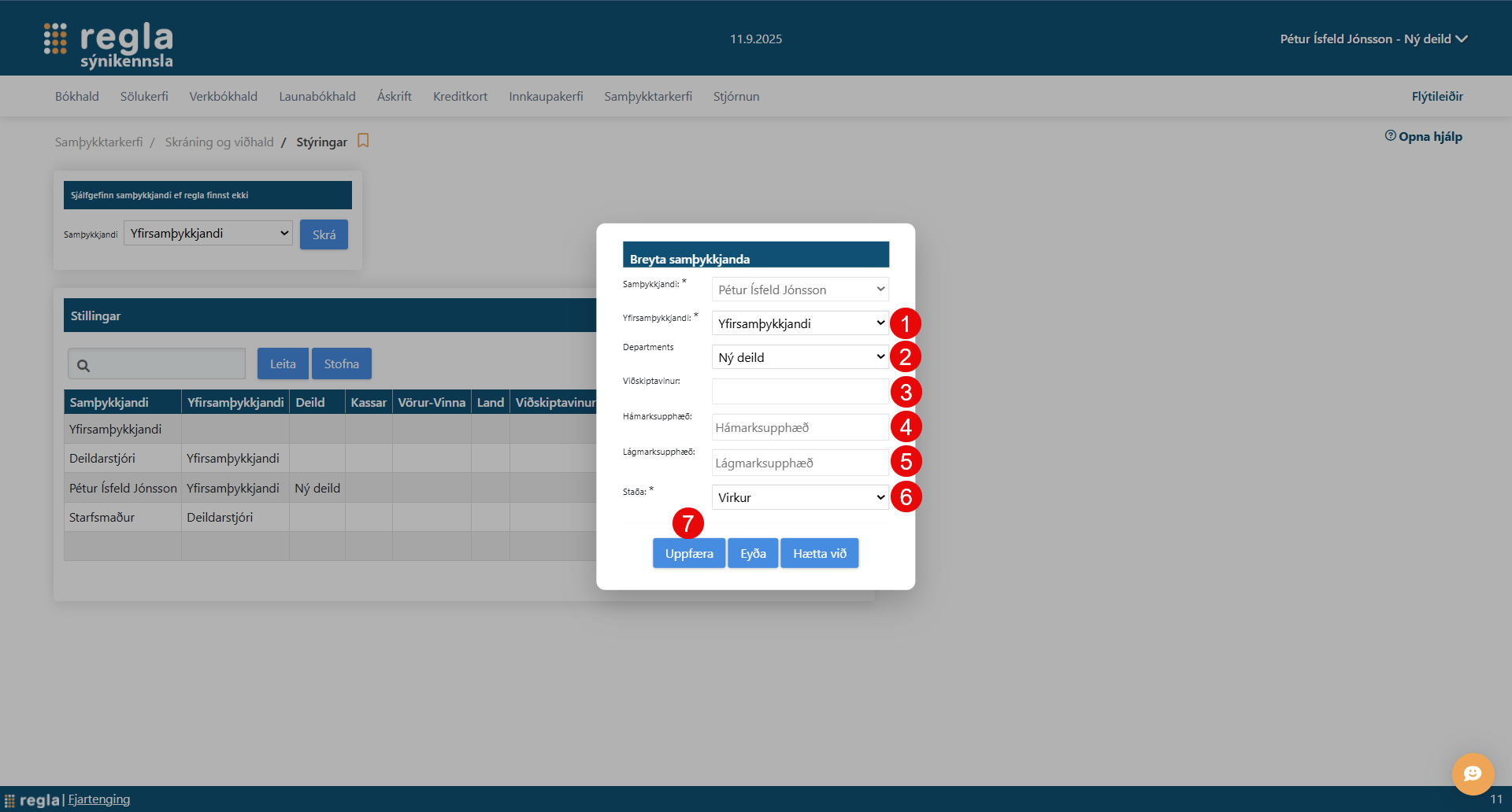 - Hægt er að skilgreina lágmarksupphæð sem samþykkjandi má samþykkja