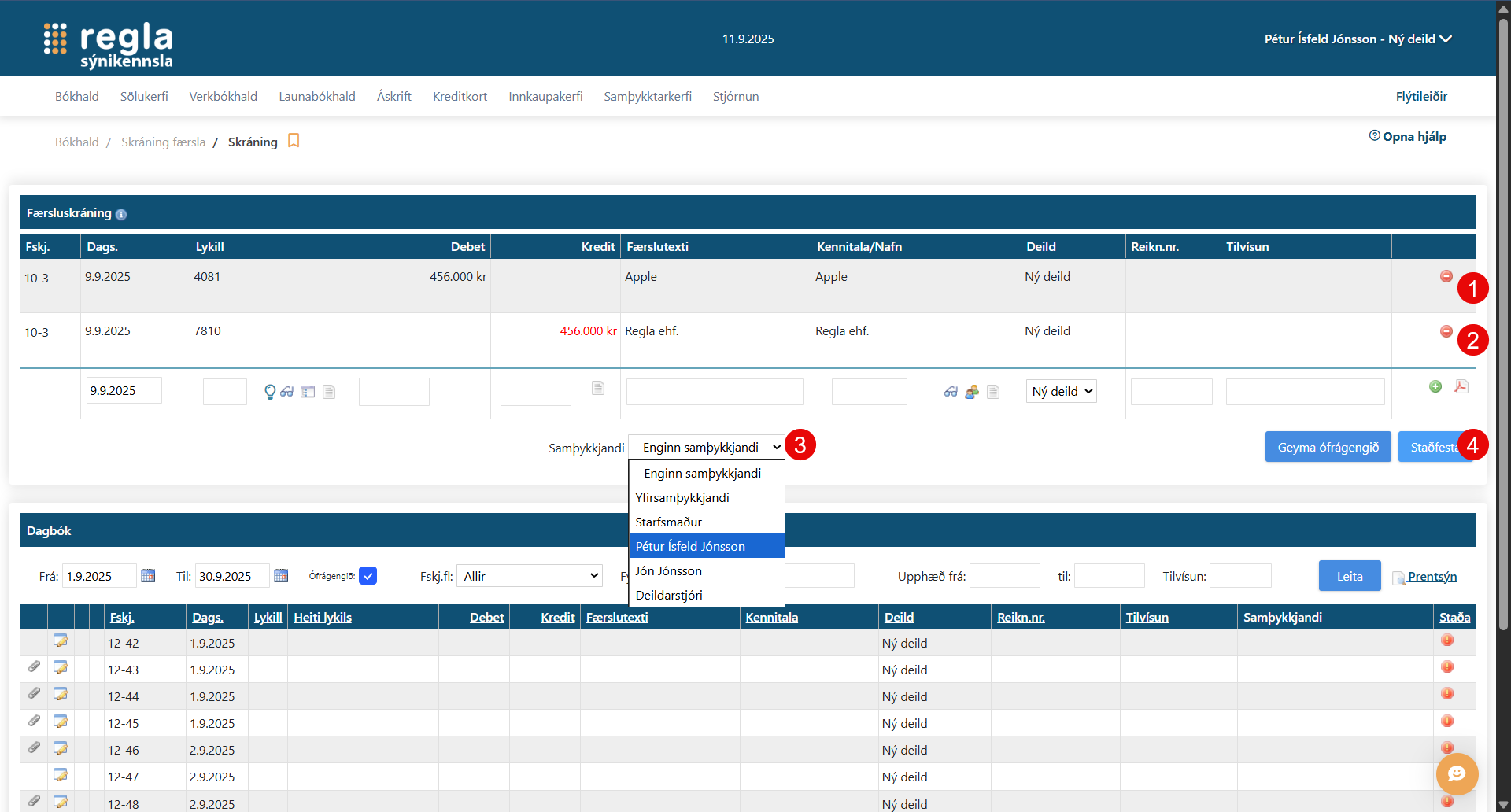 2b. Handfærð bókhaldsfærsla send í samþykkt