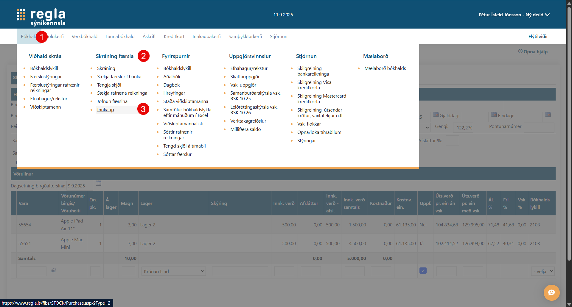 3. Bókari fer yfir samþykkta reikninga og bókar