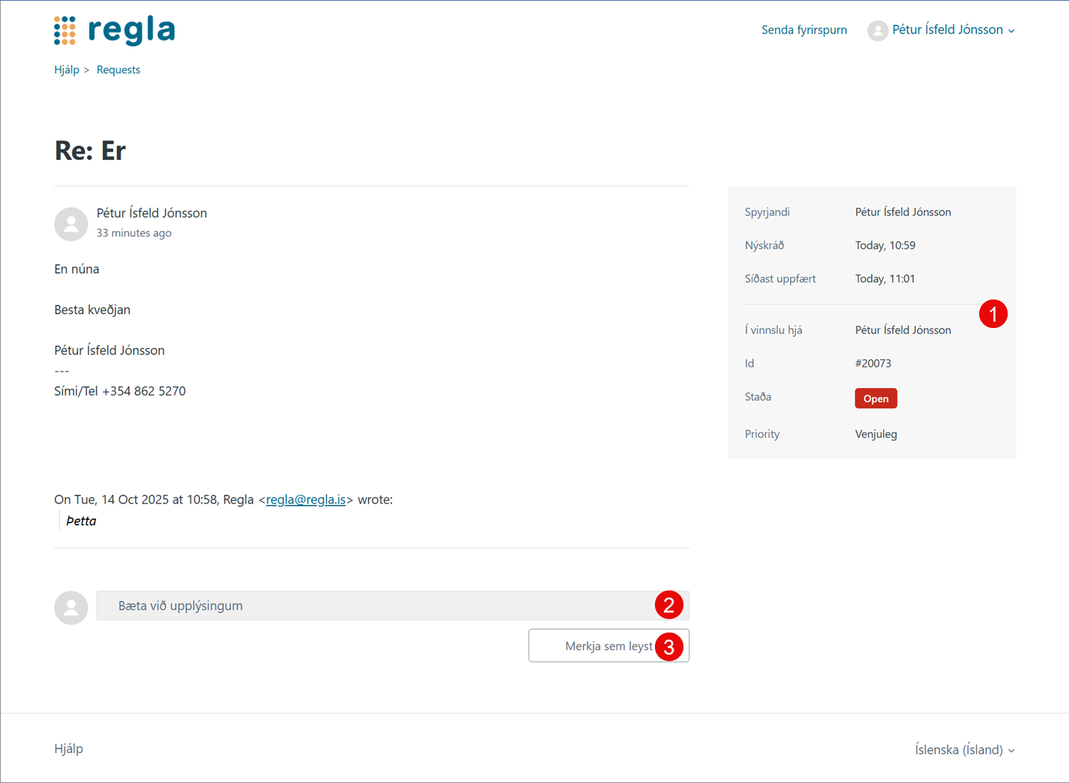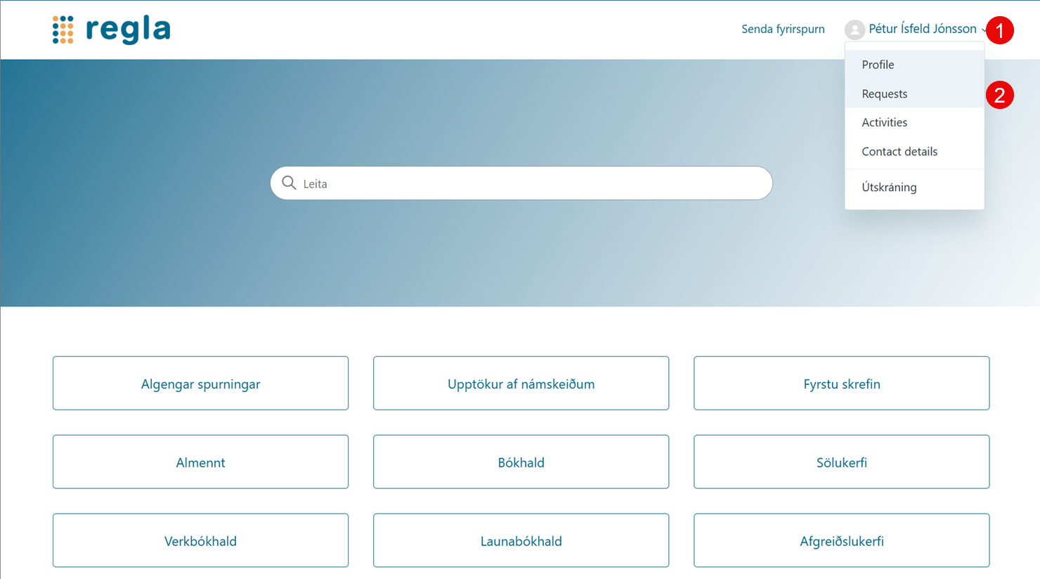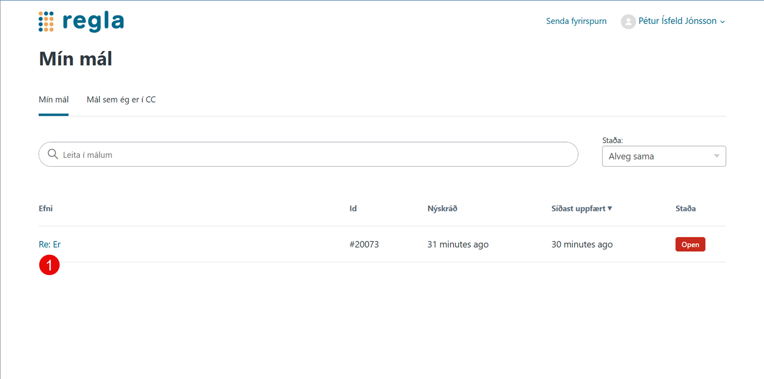 Mínar síður til að fylgjast með þjónustumálum. Pétur Ísfeld Jónsson Október 14, 2025 14:04 Uppfærð Hægt er að fylgjast með eigin þjónustumálum sem send eru á regla@regla.is á mínum síðum áhttps://hjalp.regla.isVeldu þar Innskráning Tengdar greinar Vörpun bókhaldslykla Hvernig segi ég Reglu upp? Flytja inn skrá Launþegar Athugasemdir 0 comments Vinsamlegast innskráning til að skilja eftir athugasemd.