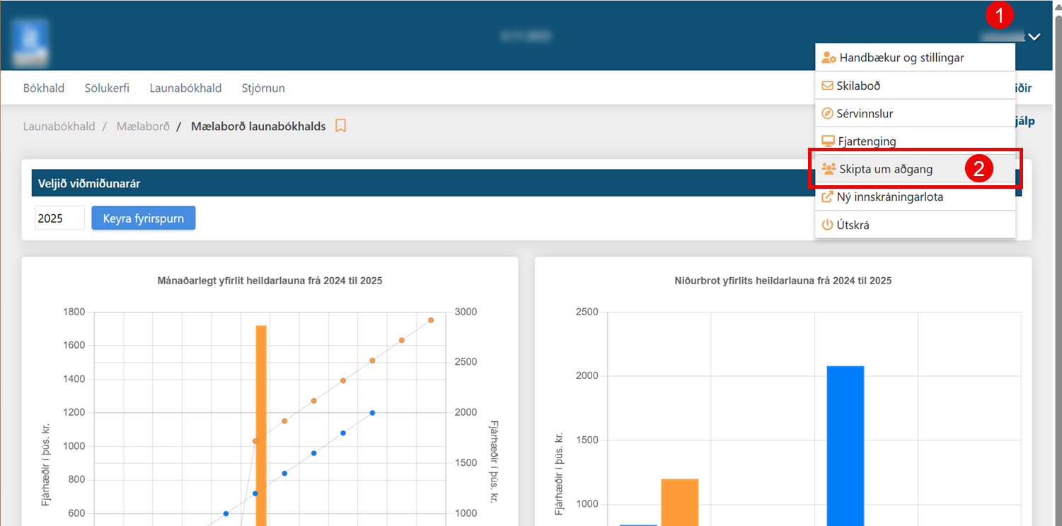 Við það opnast viðmót þar sem hægt er að skipta yfir í önnur fyrirtæki sem notandi hefur aðgang að.