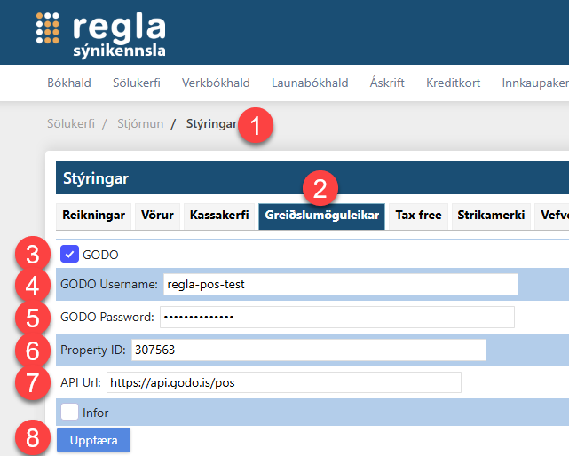 - Sláðu inn API Url'ið: https://api.godo.is/pos