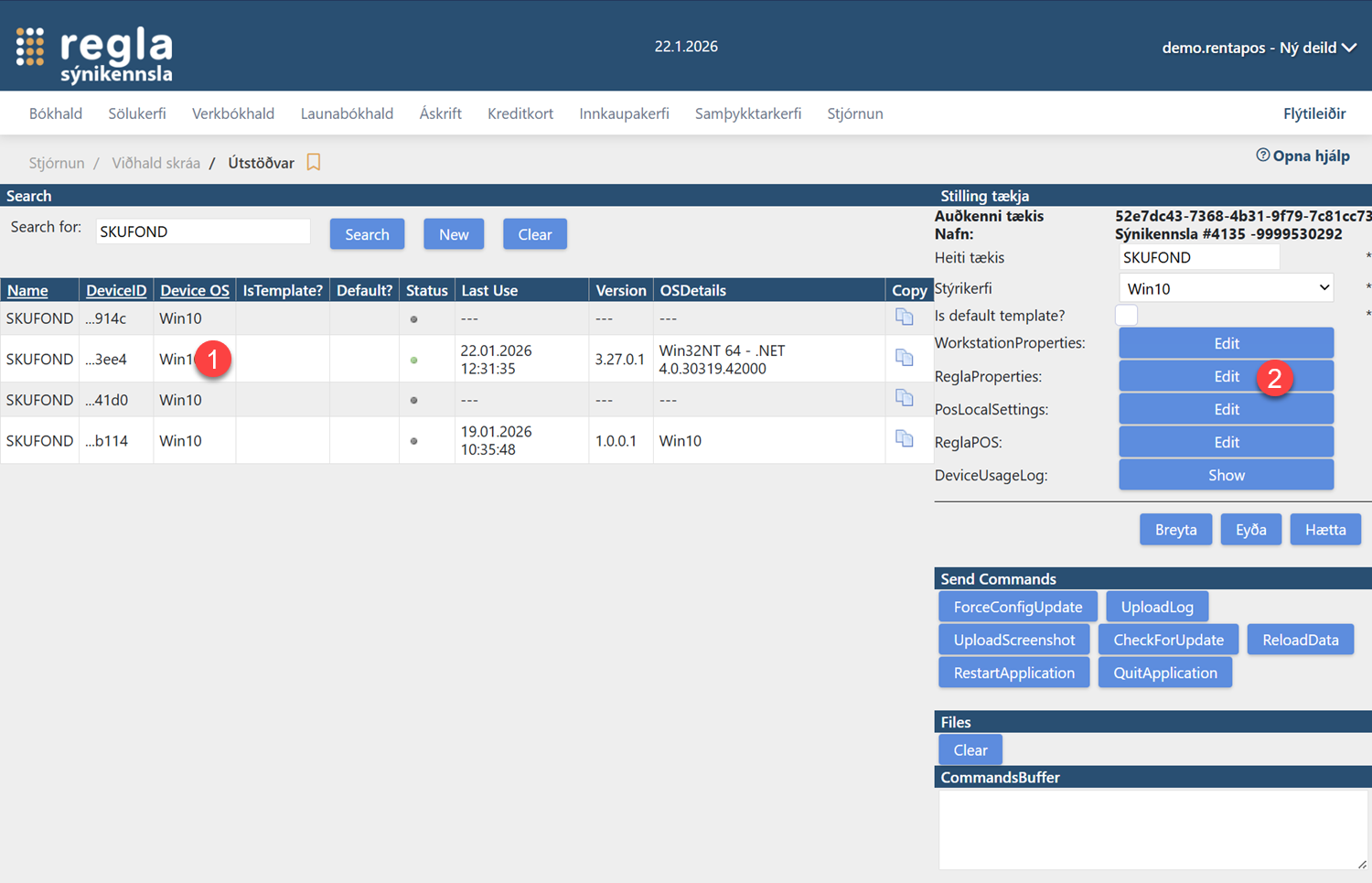 - Veldu Sölukerfi / Stjórnun / Stýringar