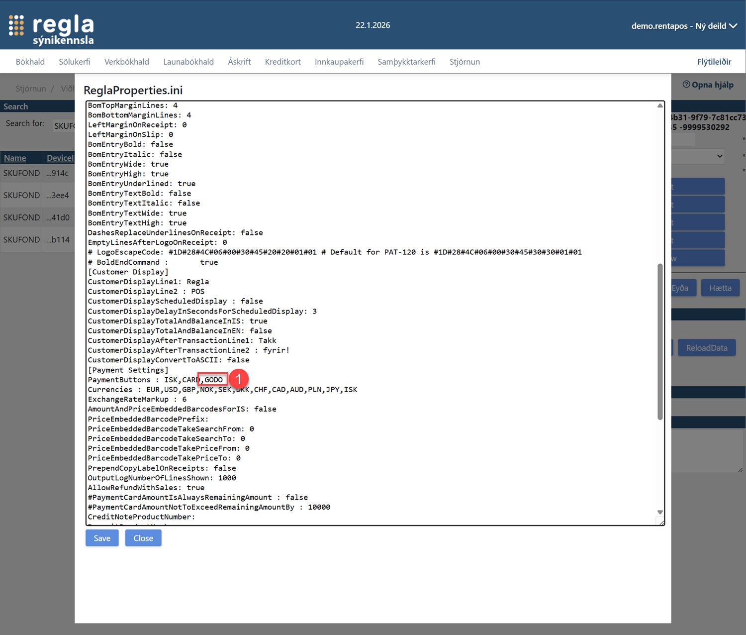 Nú ætti GODO takki að birtast sem greiðsluleið á öllum kössum eftir að Regla POS er endurræst.