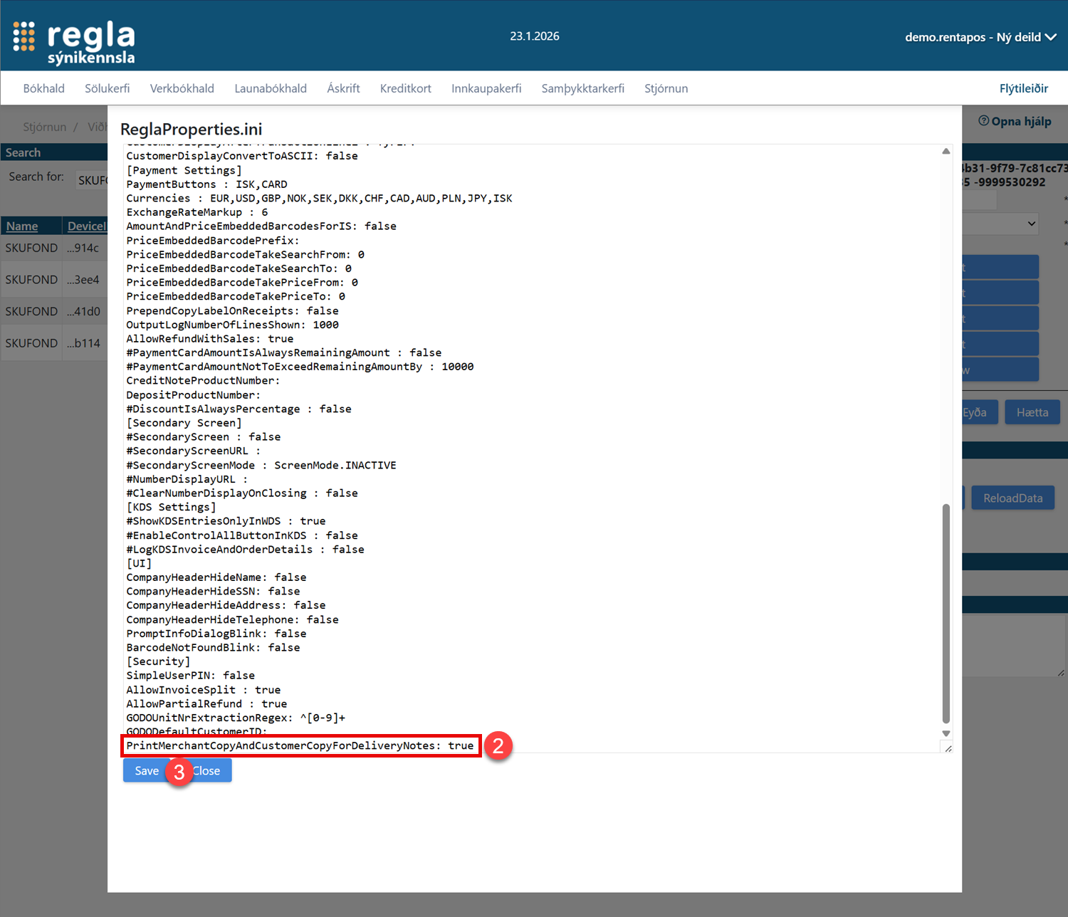 - Opnaðu aftur ReglaProperties.ini skrána