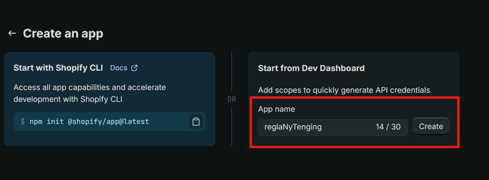 Fyrst þarf að búa til nýtt devapp sem er gert með þessum skrefum: