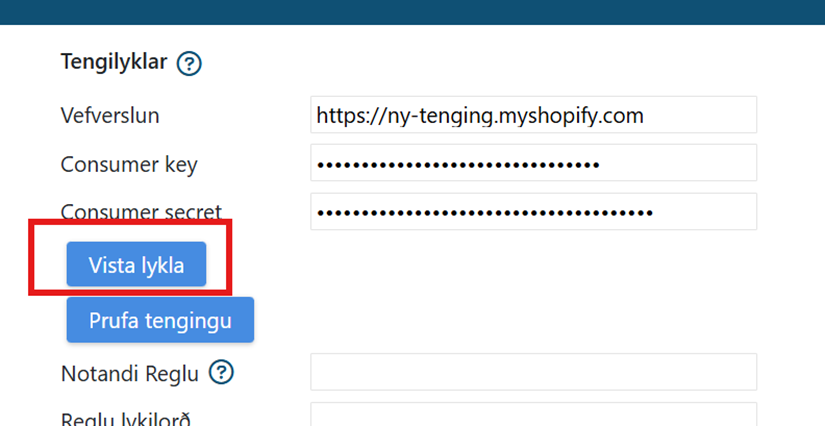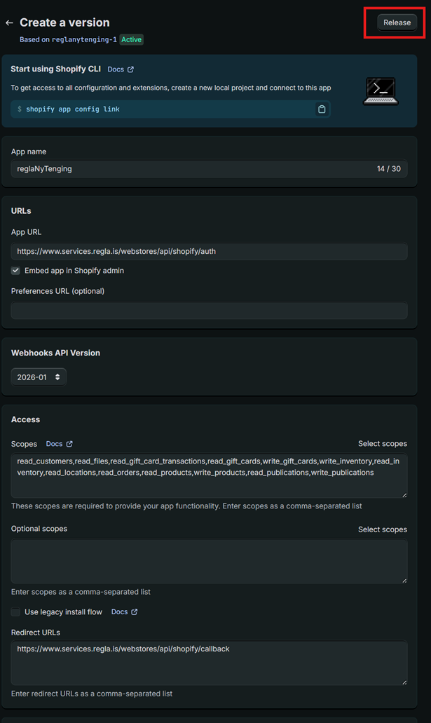 Redirect URLs: https://www1.services.regla.is/webstores/api/shopify/callback