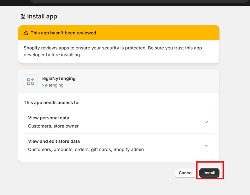 App URL: https://www1.services.regla.is/webstores/api/shopify/auth
